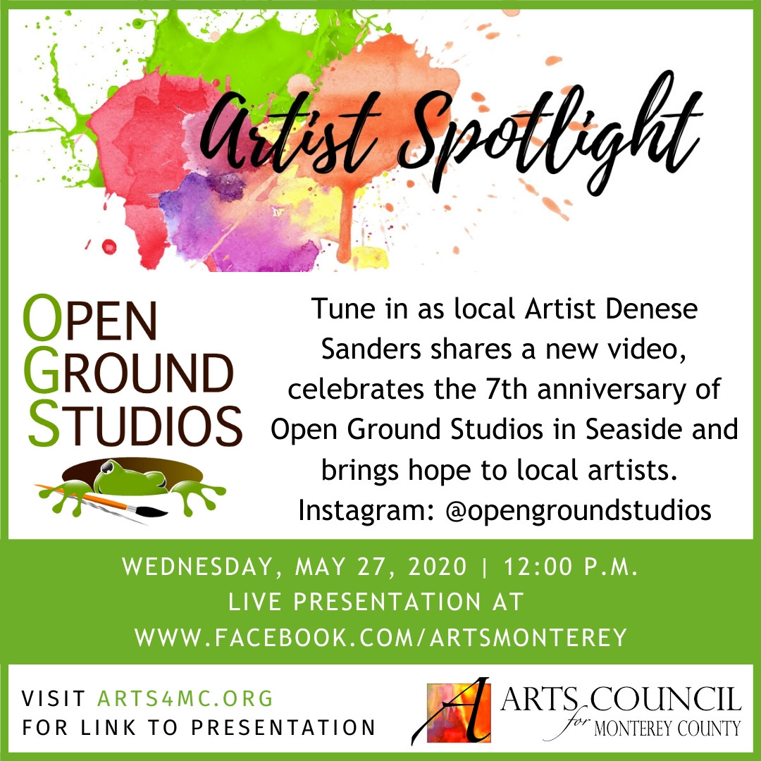 Tune in as local Artist Denese Sanders shares a new video, celebrates the 7th anniversary of Open Ground Studios in Seaside and brings hope to local artists! #Arts4MC #opengroundstudios