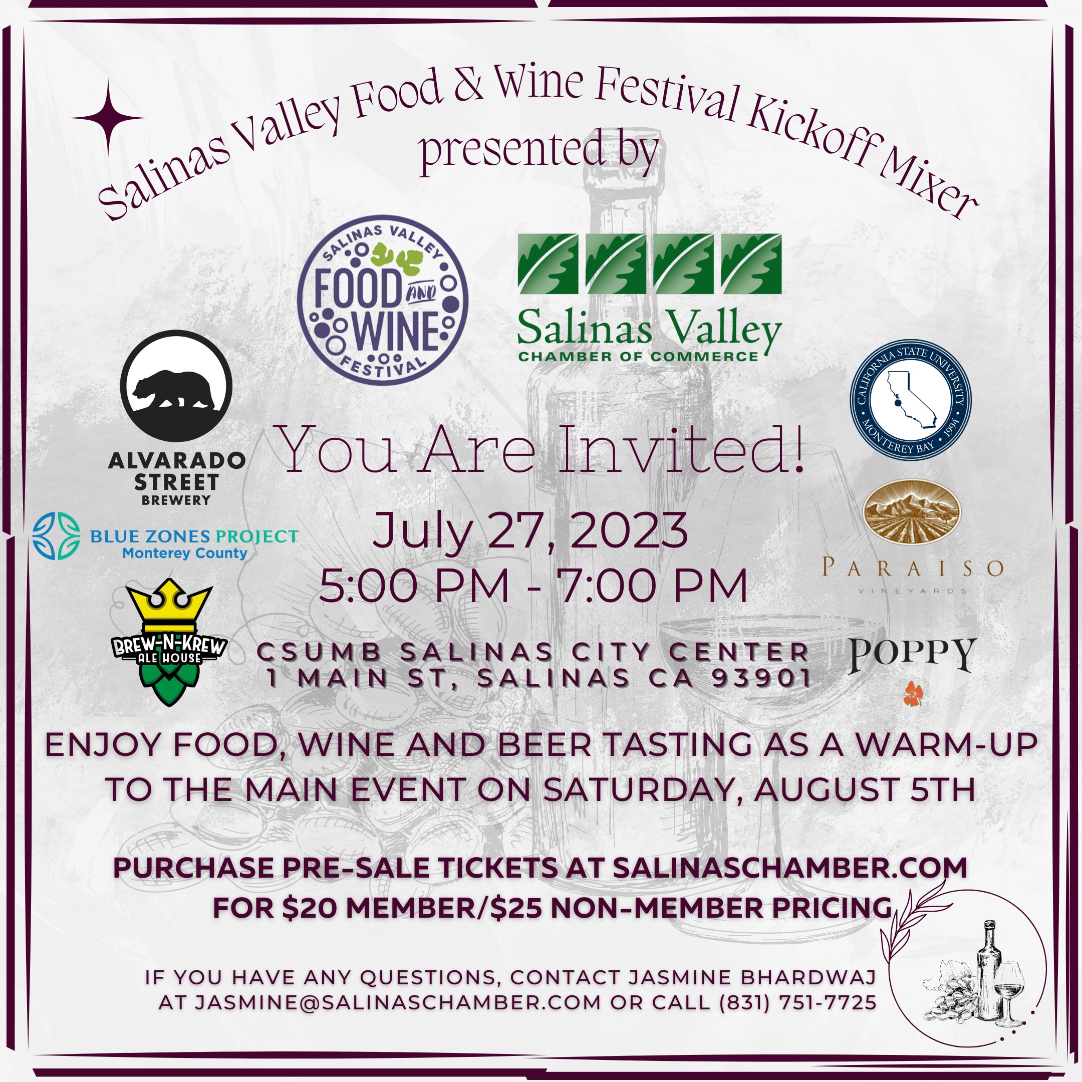 If you have any questions related to the event, please contact Jasmine Bhardwaj at Jasmine@salinaschamber.com.