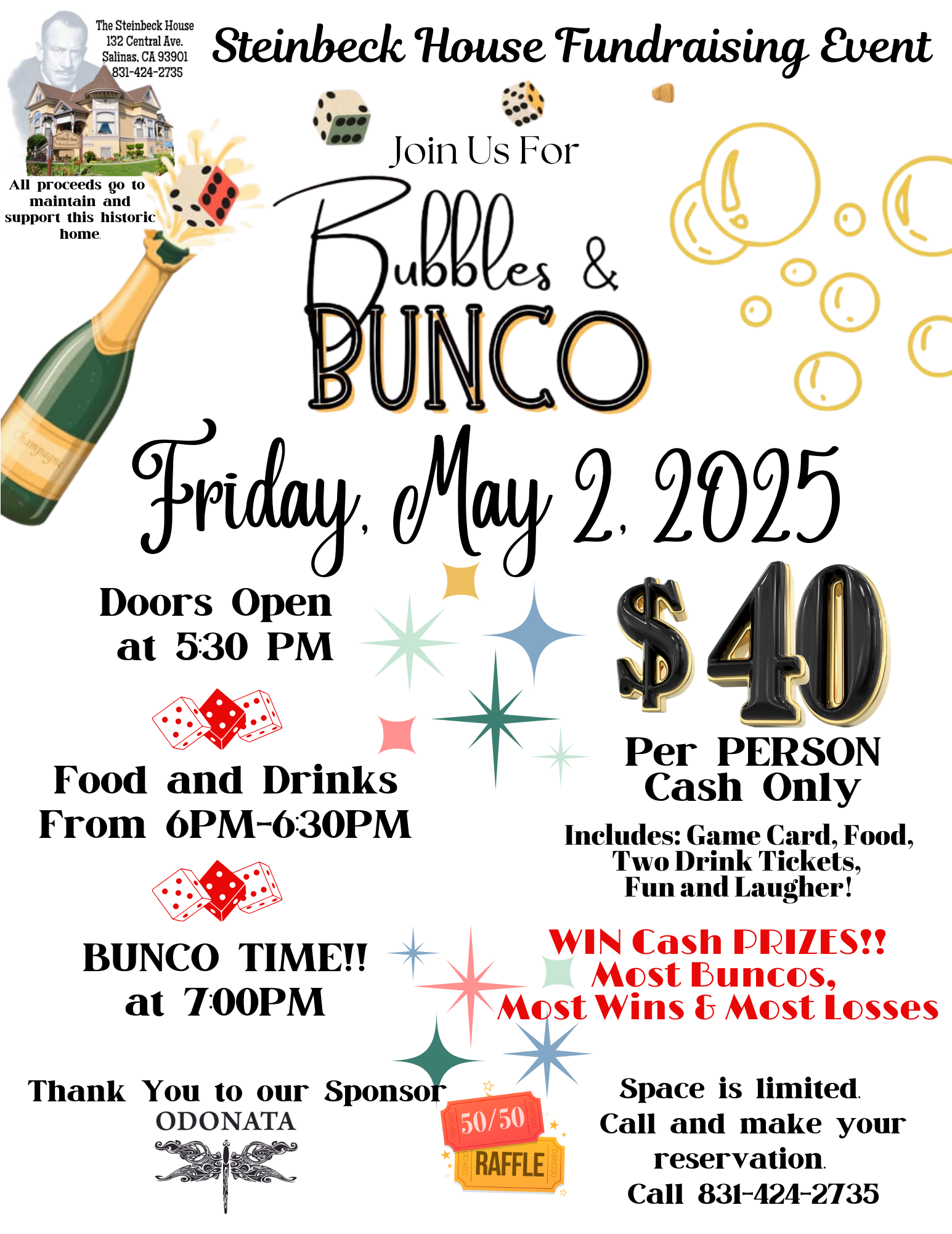 Bubbles and Bunco- Steinbeck House Fundraiser