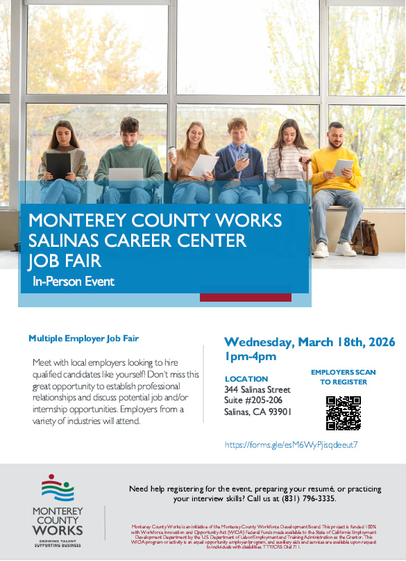 Is your Monterey County business hiring? Maybe you're a jobseeker looking to reenter the workforce? In either case, you're invited to join us at our Salinas Career Center for our Multiple Employer Job Fair. We host our Multiple Employer Job Fairs twice a month. These events can be employers hiring from a variety of industries. We're seeking 10-15 employers that are currently hiring to join us for this event. There is no fee to participate.