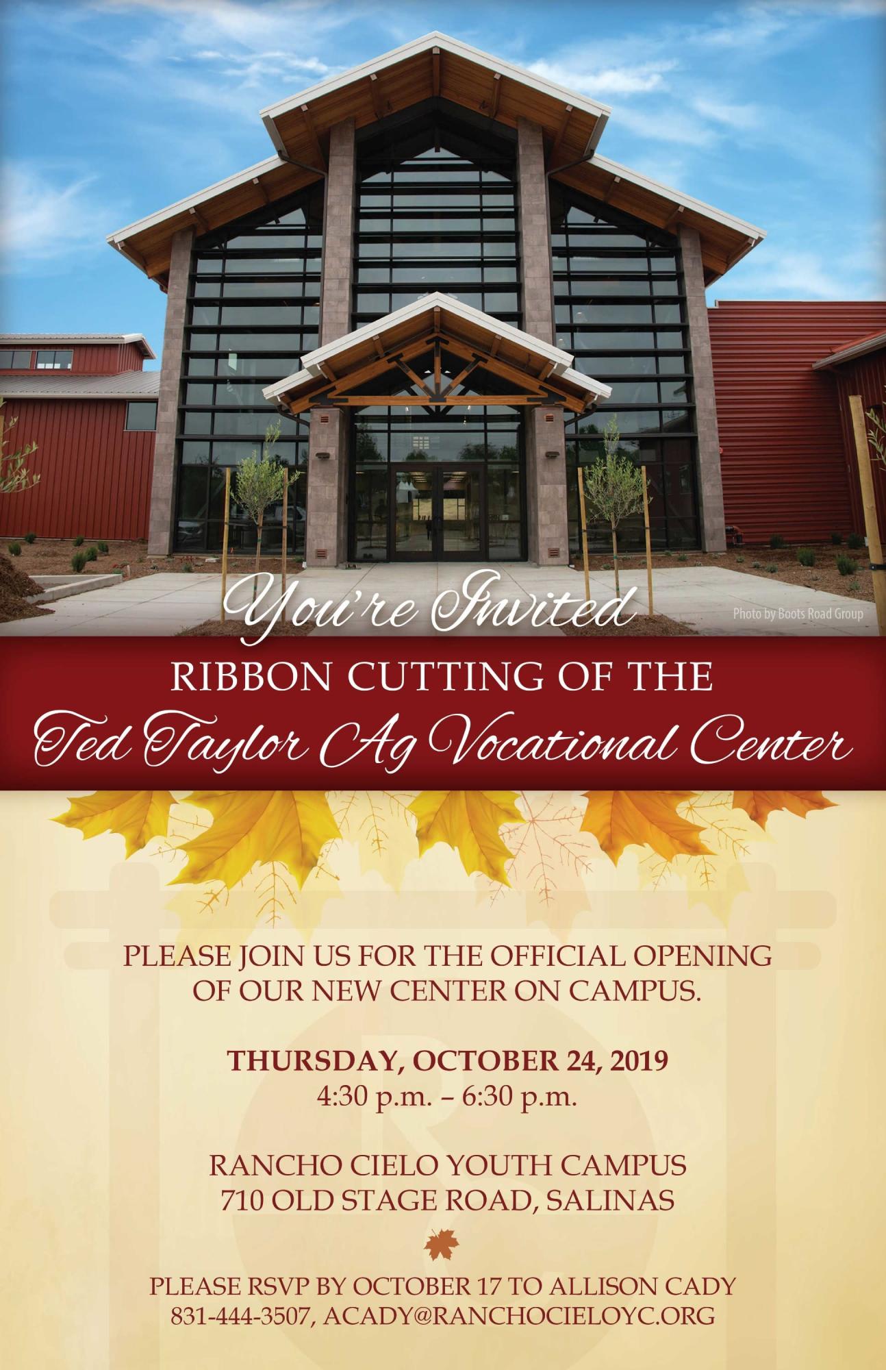 Rancho Cielo is celebrating opening the Ted Taylor Vocational Center by having a ribbon cutting with the Salinas Valley Chamber. Ted Taylor Ag Vocational Center will train young people for highly-skilled, living-wage jobs in Monterey County’s largest industry. The 30,000 square foot facility houses programs that incorporate job skills training, diploma-based academics, behavioral health counseling, life skills development and enrichment opportunities for the youth. Their programs map into Hartnell College’s curriculum, and the students take Hartnell courses as part of their Rancho Cielo education.