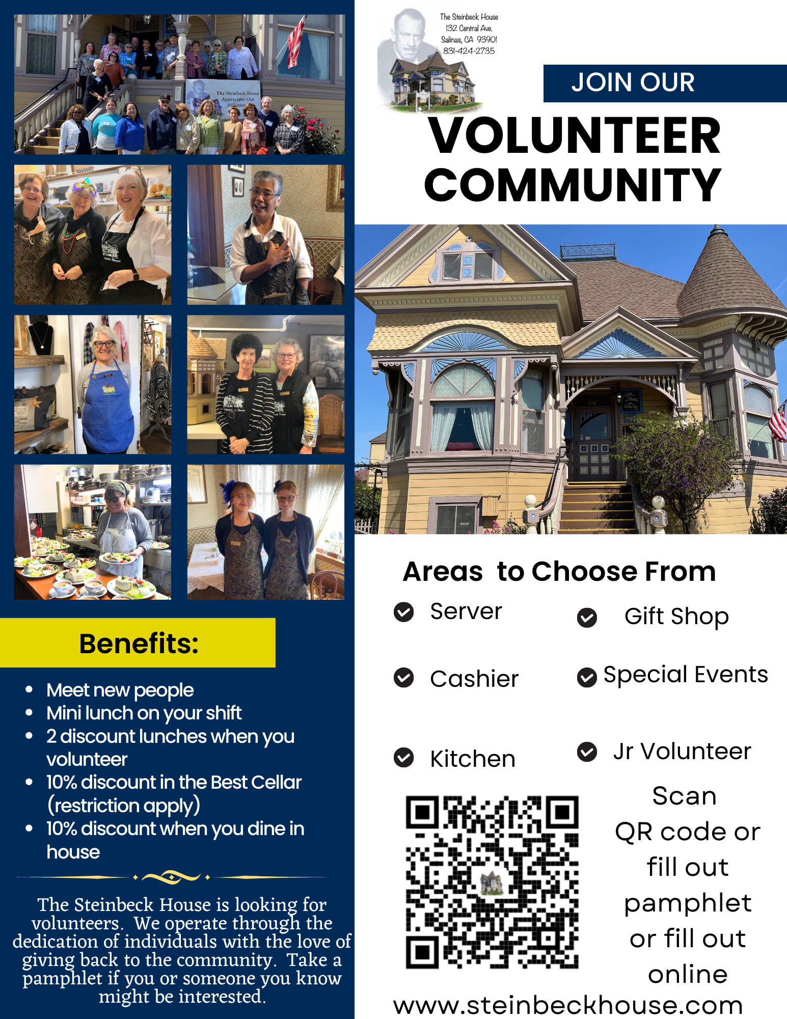 Related Links : https://steinbeckhouse.com/become-a-volunteer/