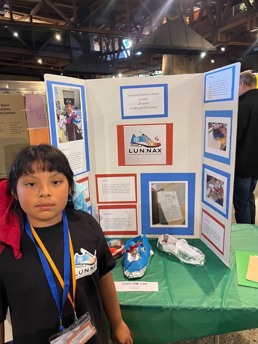 LUNA RAMIREZ, 4th grade, Natividad Elementary – Lun.nax features adjustable hot/cold temperature controls in footwear to meet diverse health needs.